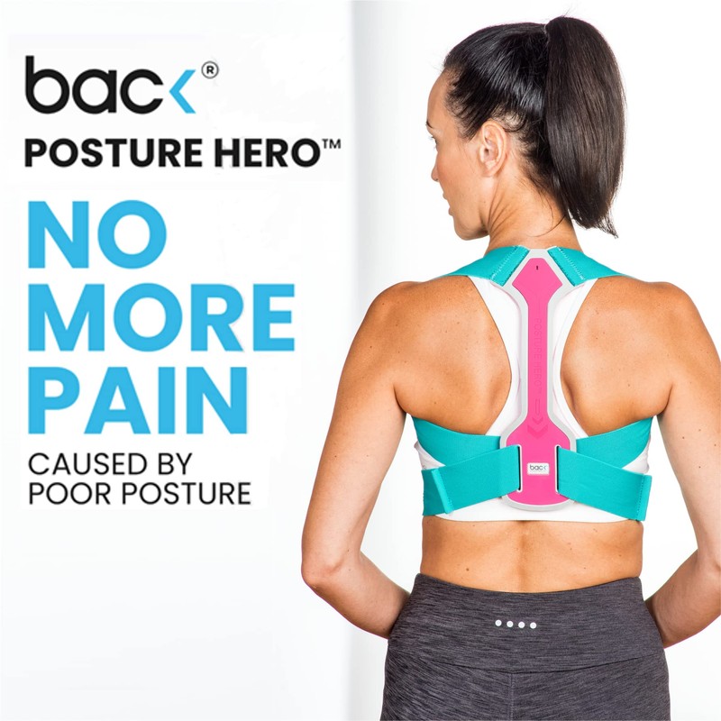 back Posture Hero™ Sports for Men & Women - Award Winning Posture Support (Pink/Turquoise, Large)
