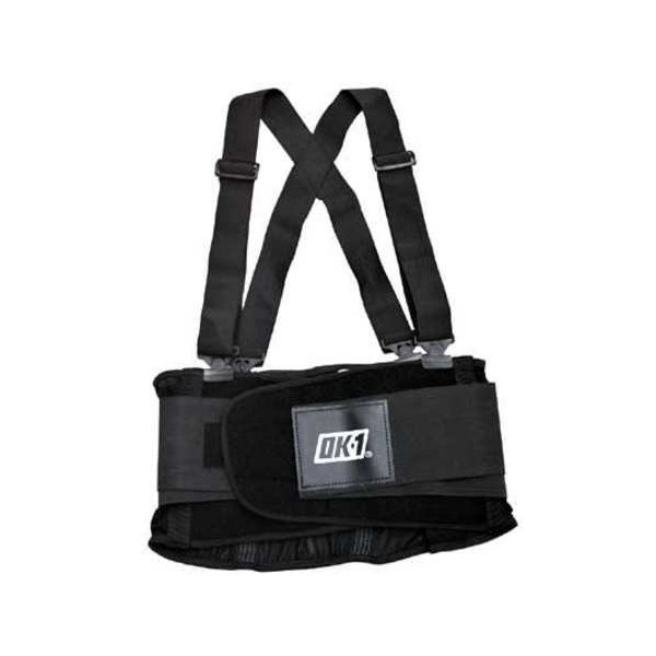 - Price For: Each Suspenders: 1-1/2" Knit Elastic Item: Back Support Closure Type: Double Overlap Color: Black Material: Nylon Width: 8" Back Support Size: 3XL Fits Waist Size: 54" to 61" Country of Origin (subject to change): China