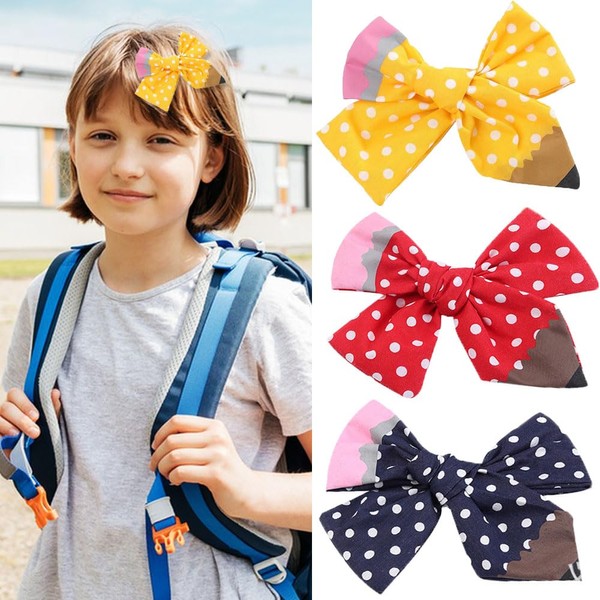 - ✏️Product Contents: You will receive a set of 3 back-to-school pencil bow hairpins, including 3 color, 1 pieces each, sufficient quantity to meet your needs for daily matching, replacement or sharing with friends. Whether it is matched with a dress, jeans, sportswear, or school uniform, it can show different styles and charms.
