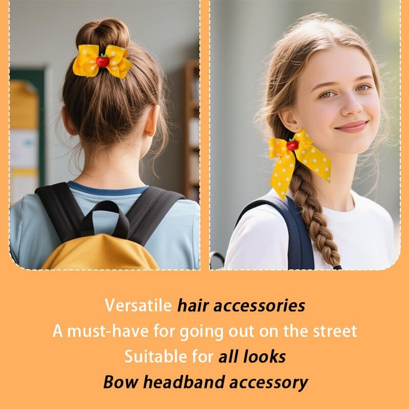 - Unique Design Back-to-school Hair Bow Barrettes for Teen Girls: The combination of polka dot printing and fruit elements makes our first days of school hair bow clip for teen girls more unique and stylish compared to other back to school hair accessories for girls, it will the best back to school outfits acccessories for girls