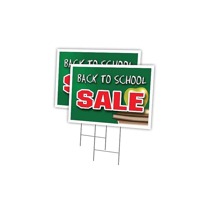 BACK TO SCHOOL SALE 2 Pack Of 18" x 24" Yard Sign & Stake outdoor plastic window | Advertise Your Business | Stake Included Image On Both Sides | Made in The USA