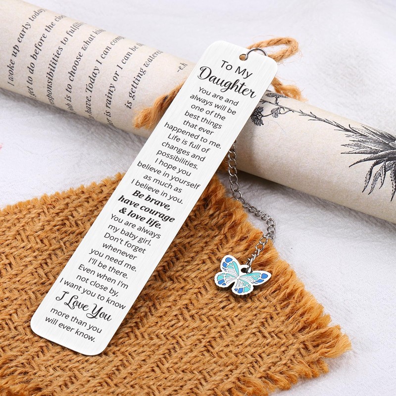 - 【Daughter gifts from mom】-- Are you looking for a special gift for your daughter? This simple but thoughtful bookmark can be a nice gift.Engraved with sentimental words and designed with a vivid butterfly blue wings, which symbolizes gorgeous growth and transformation of your daughter, she is sure to love the bookmark. Inspirational daughter gifts from mom, teen girl birthday gift for daughter, mom gifts from daughter, grown daughter gifts, butterfly gifts for mom to daughter,teen girls.