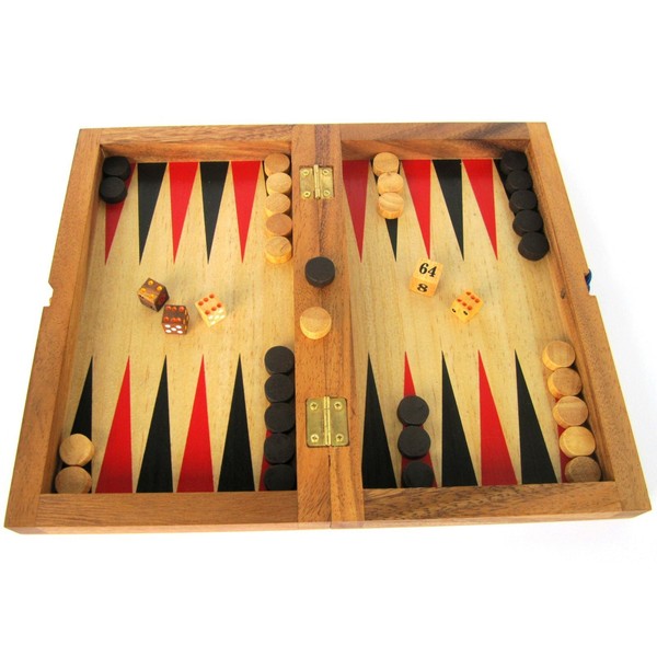 Backgammon + Lady Size M Wooden with Folding Game Board 31 x 25 cm and Red/Black Backgammon Fields