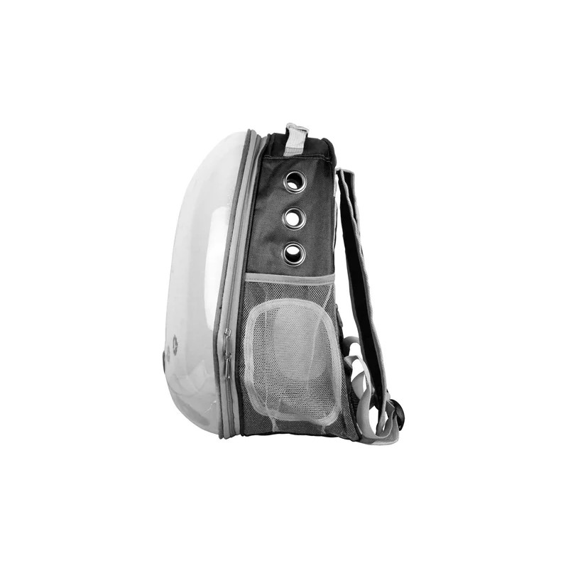 El diseño vertical con cúpula de PVC transparente permite a tu mascota disfrutar del paseo observando el entorno, mientras tú luces una mochila moderna y elegante.