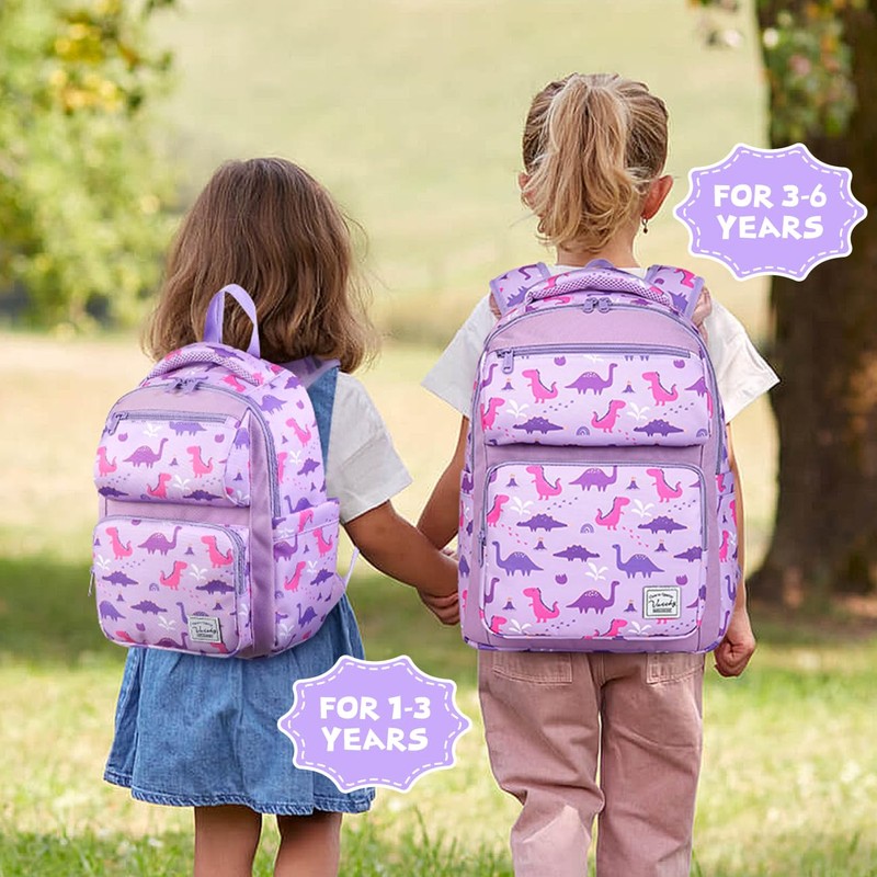 Backpack for Girls,Vaschy Kids Cute Kindergarten Preschool Children 12L Small Backpack Bookbag for School Travel Lilac Dinos