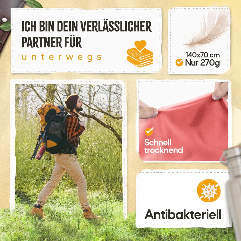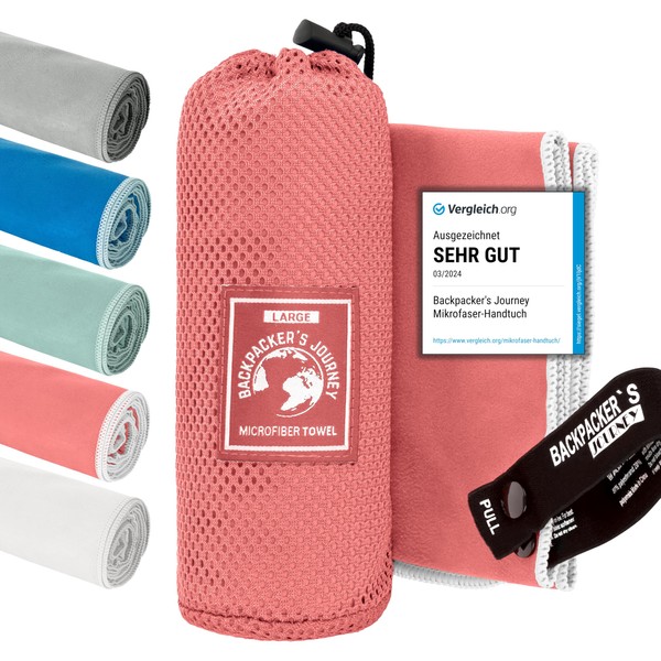 Backpacker's Journey Microfibre Towels in S, M, L, XL, Travel Towel Sets, Lightweight, Quick-Drying, Absorbent and Anti-Bacterial (Salmon XL and M)