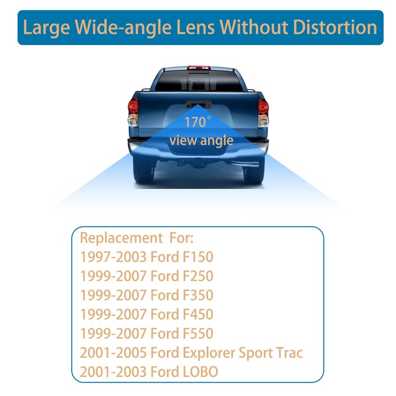 - 【Fit OE Number】Compatible with 1997 1998 1999 2000 2001 2002 2003 Ford F-150,1999 2000 2001 2002 2003 2004 2005 2006 2007 Ford F-250,1999-2007 Ford F-350,1999-2007 Ford F-450,1999-2007 Ford F-550,2001-2005 Ford Explorer Sport Trac,2001-2003 Ford LOBO. The tailgate camera can be removed separately to replace the camera or tailgate handle independently.