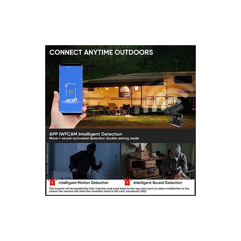 • Motion Detection and Voice Detection: When the reverse camera detects a moving object or sound, it will immediately send an alert notification to the phone. It catches 3 photos and transfers them back to the app, while the recorded video is also stored on the memory card (not included) at the same time (Note: needs to be set in the app).