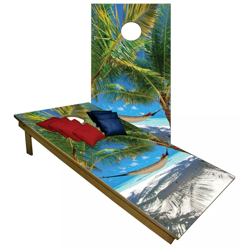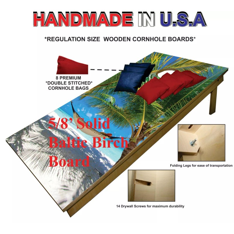 BackyardgamesUSA CORNHOLE BEANBAG TOSS GAME w Bags Game Boards Hammock Beach Ocean Sun Set