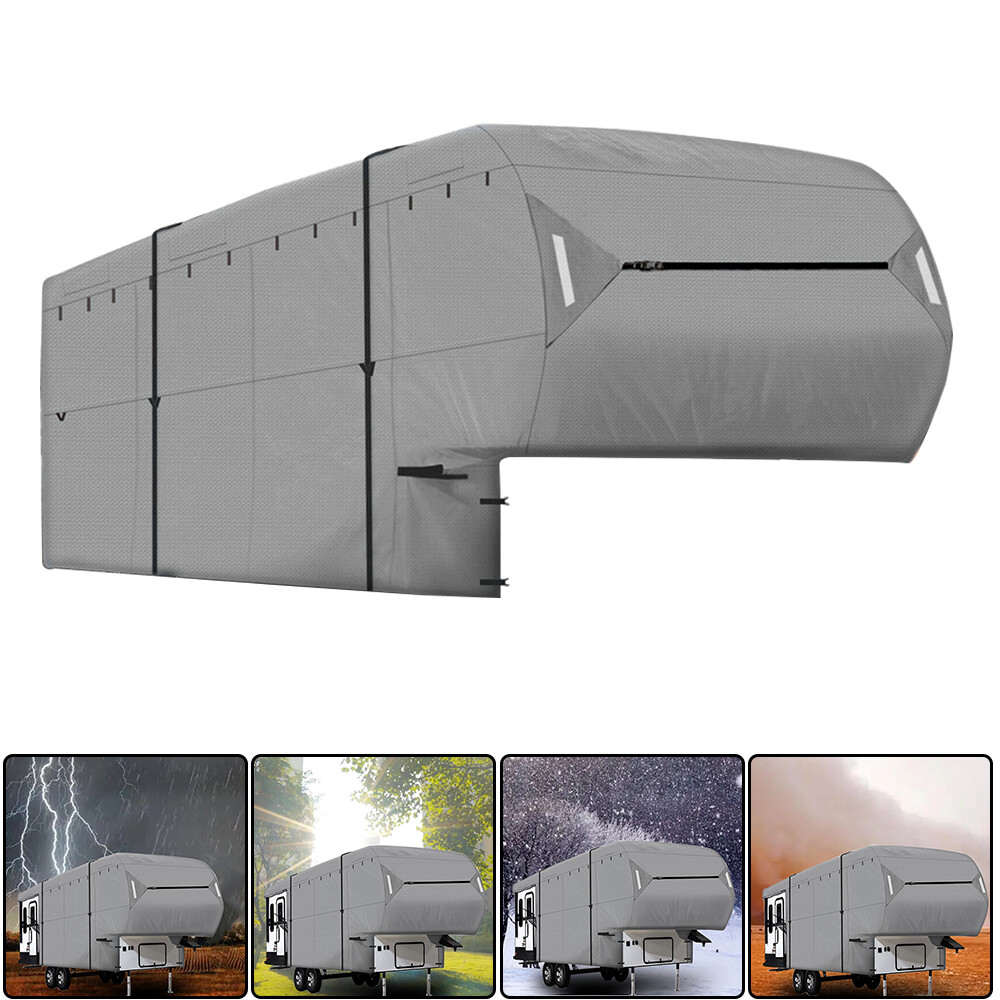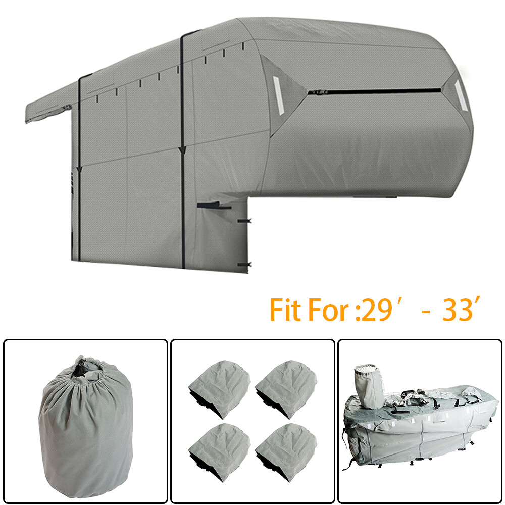 Note:Please measure your RV to ensure a proper fitting size.Overall length includes bumper ,but not hitch. Pls add 1 foot to total length if you have a roof mounted AC unit. Measurement including spare tire if mounted to the back of your camper.