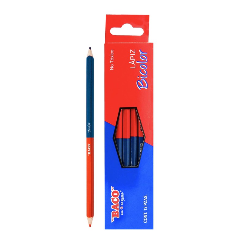 - Contiene: 1 caja plegadiza con 12 lápices hexagonales bicolor azul y rojo, con punta de 3 mm.