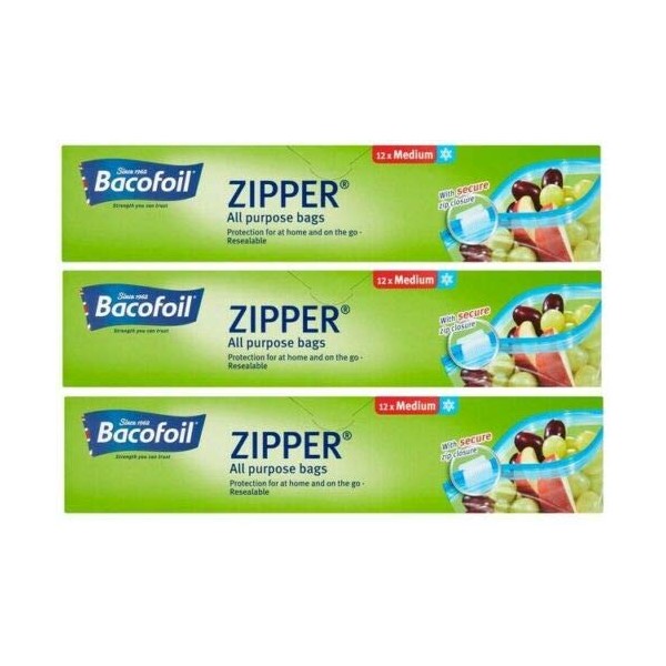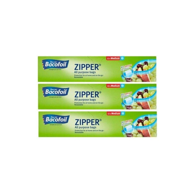 Bacofoil 3 x Zipper Medium All Purpose Bags Food Freezing Storage Bags (total 36 bags)