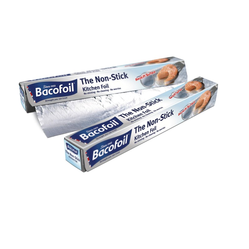- Aluminium foil with unique BacoLift non-stick surface, Reduced risk of food sticking while preserving the flavour and look of food, Time saving when cleaning and washing up, No need to use oil or butter making it the healthier way to prepare food, Always use the non-stick (non-shiny) side