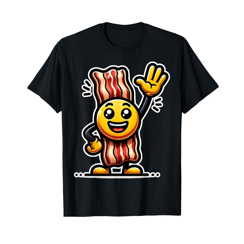 - Meet our cheerful bacon cartoon character, ready to greet you with a big smile! Perfect for kids, this fun graphic encourages everyone to join in and say aye with a cute .