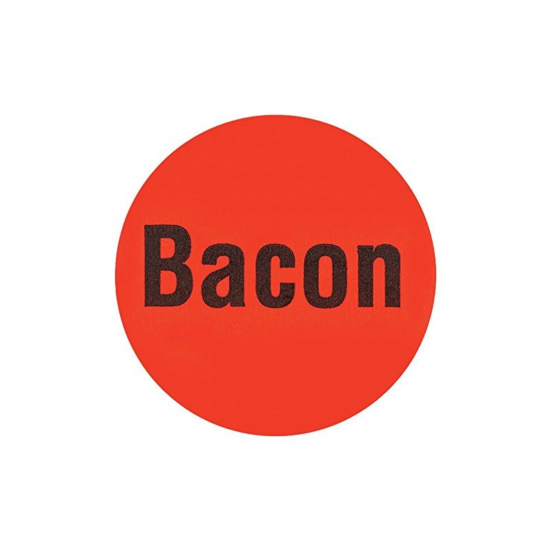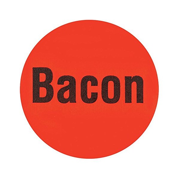 "Bacon" Label Red Deli Dot Packaging Labels Black Imprint - 1"Dia 1000 Per Case