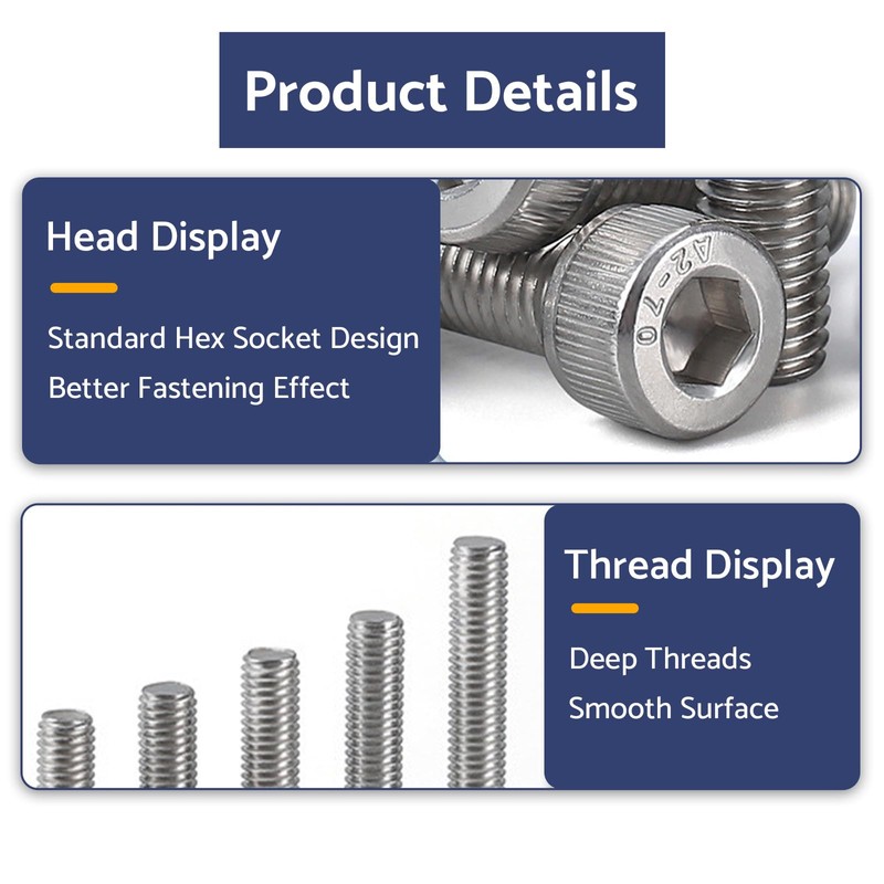 - WIDE APPLICATION Hex socket screws provide reliable attachment and easy handling, ideal for mounting and maintenance of cars, bicycles, communication equipment and ships