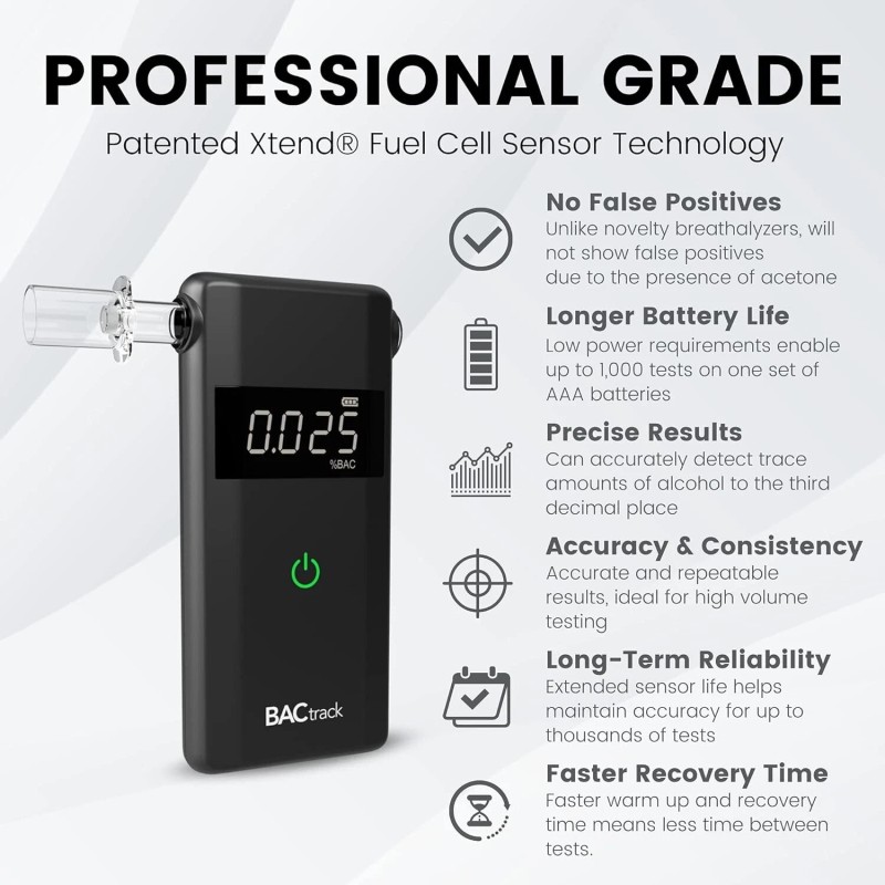 - PROFESSIONAL-GRADE ACCURACY - Powered by BACtrack's platinum-based Xtend Fuel Cell Sensor, the Scout utilizes the same pro-grade technology trusted by hospitals, clinics, and even law enforcement.