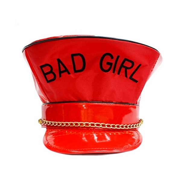 - Bad Girl Themed Hat, Fun Party Hat, Perfect Hat for Photo Booths, Fancy Dress Costume, Hat Black and Red in Colour, Made from PVC material, Gold Chain on hat Bad Girl, Pride, LGBT