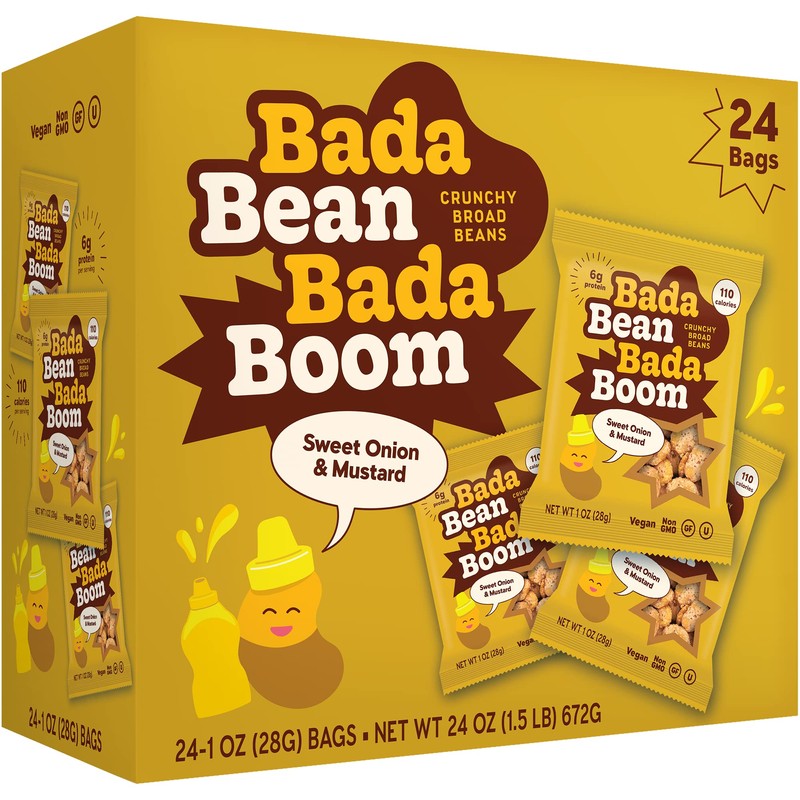 Enlightened Bada Bean Bada Boom - Plant-Based Protein, Gluten Free, Vegan, Crunchy Roasted Broad (Fava) Bean Snacks, 110 Calories per Serving, Onion & Mustard,1 Ounce (Pack of 24)