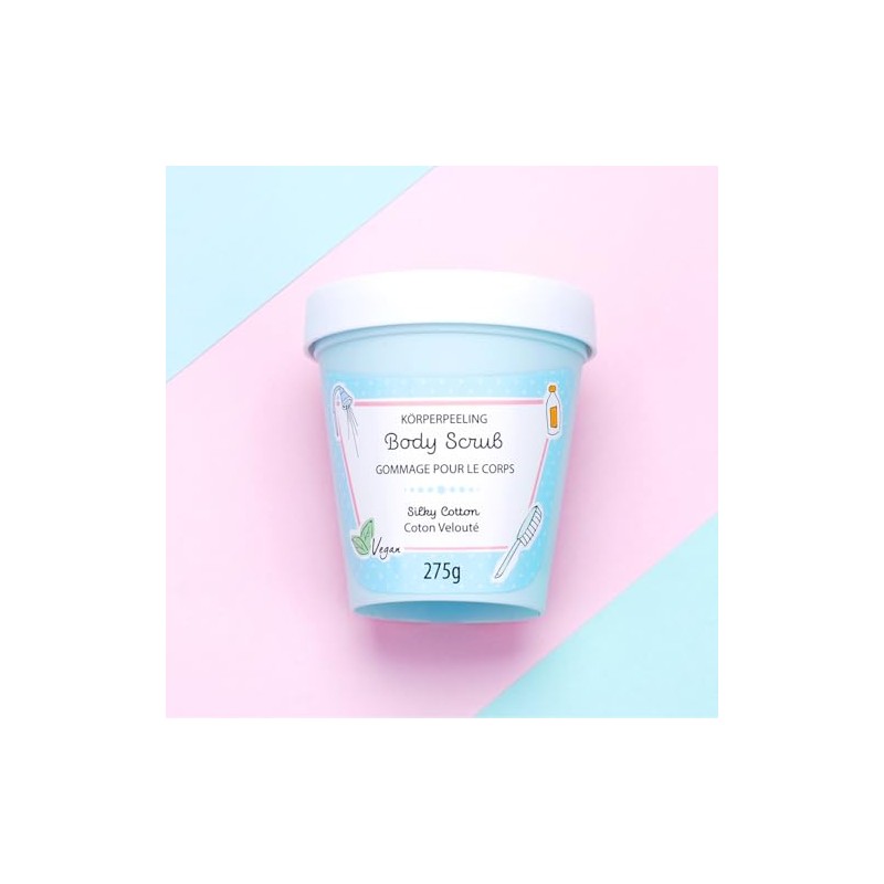 Pflegendes Körperpeeling ohne Mikroplastik Vegan Plastikfrei Ohne Parabene Ohne Silikone Zart pflegend Für samtweiche Haut Das BadeFee Körperpeeling Silky Cotton befreit Ihre Haut schonend von kleinen Unreinheiten und Schüppchen. Durch Mandelöl, Sheabutter und pflanzliches Gylcerin wird Ihre Haut gleichzeitig mit Feuchtigkeit und wertvollen Nährstoffen versorgt. Sie brauchen sie im Anschluss nicht mehr eincremen und genießen trotzdem ein samtweiches Hautgefühl. Statt Mikroplastik zu verwenden, setzen wir bei unserem Körperpeeling Silky Cotton auf reines Meersalz. Es hat einen reinigenden Effekt, ohne die natürliche Hautbarriere zu zerstören. Das schont sowohl Ihren Körper, als auch unsere Umwelt. Darüber hinaus duftet unser Peeling angenehm frisch nach Sandelholz, Limette und Lavendel. Wir verzichten bei unseren Körperpeelings sowohl auf Plastik, als auch auf Silikone und Parabene. Unser Körperpeeling Silky Cotton ist komplett vegan und entstammt unserer Manufaktur in Deutschland. Inhalt: 275 g Inhaltsstoffe: Maris Sal, Glycerin, Prunus Amygdalus Dulcis Oil, Butyrospermum Parkii Butter, Coco-Glucoside, Cetearyl Alcohol, Parfum, Phenoxyethanol, Ethylhexylglycerin, Tocopheryl Acetate, Prunus Amygdalus Dulcis Shell Powder, Hexyl Cinnamal, Linalool, Limonene.
