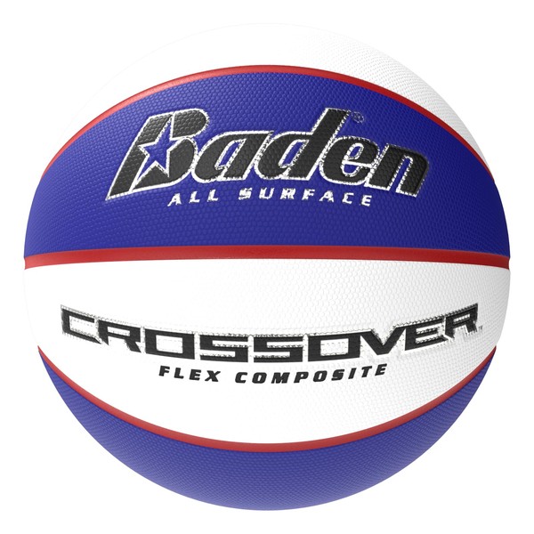 Baden Crossover Flex Composite Basketball | High-Performance Indoor/Outdoor Ball | Durable Composite Design for Versatile Play | Red/White/Blue | 29.5 inch