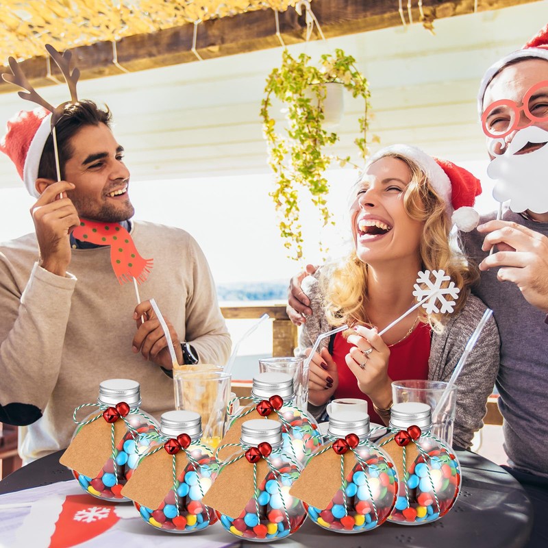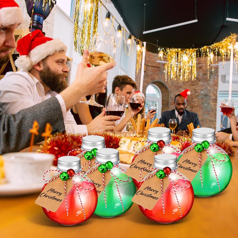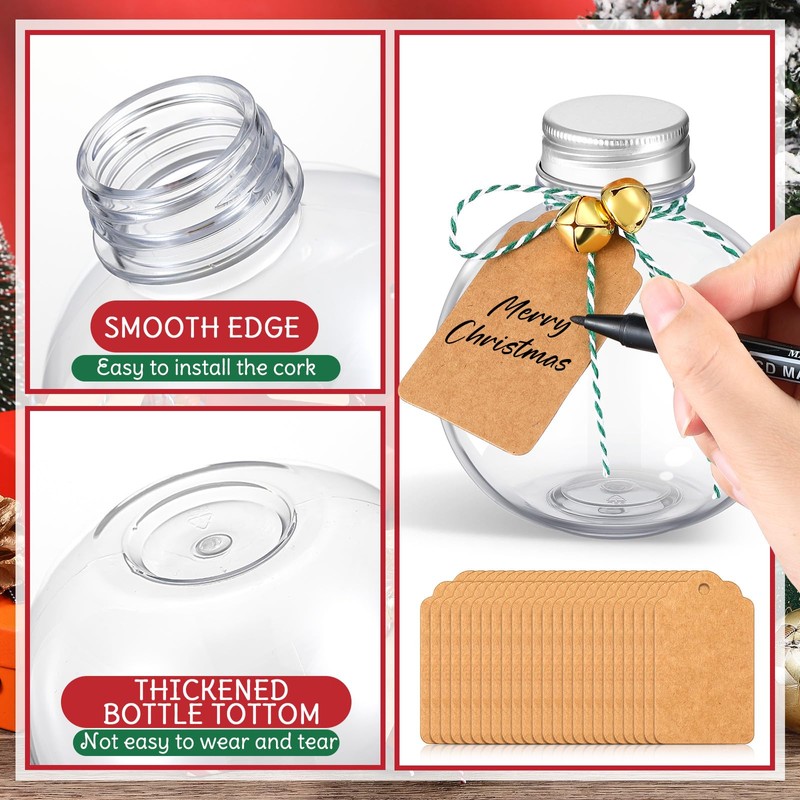 Baderke 24 Pcs 13.5 oz Spherical Plastic Potion Bottles with 48 Jingle Bells Funnel Labels Rope Potion Bottles for Drinks Candy Jar for DIY Crafts Table Decoration Christmas Party Favor Xmas Gifts