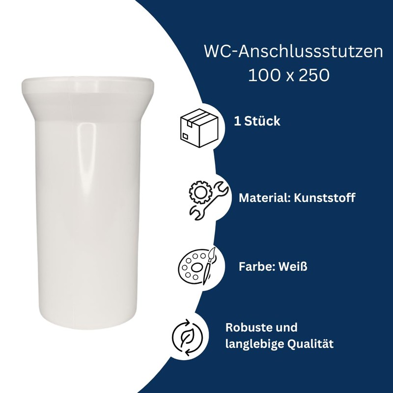 The BADfabrik24 toilet connection pipe 100 x 250 allows a reliable and tight connection between the toilet and the drain pipe. Thanks to robust materials and precise workmanship, this connection socket is ideal for use in modern sanitary installations.