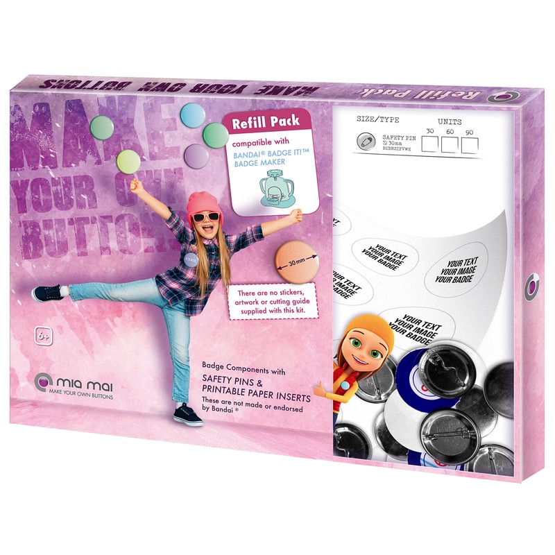 - The refill pack – to make buttons with this refill pack, the separately available badge maker from Bandai is required. Button machine, illustrated template sheets and cutting template are not included. This refill is not made by Bandai.