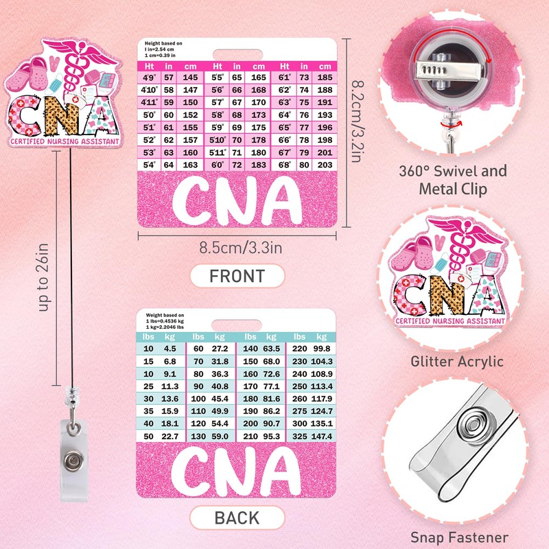 Badge Reels Retractable and Badge Buddy - CNA Certified Nursing Assistant Badge Reel with Alligator Clip, Double Side CNA Badge Buddy with Height & Weight Conversion Charts, Gifts for Nurse CNA