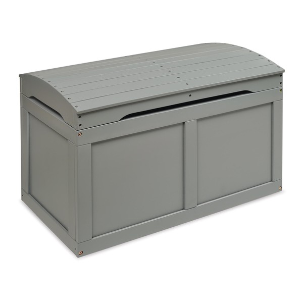 Badger Basket's Barrel Top Toy Chest features attractive styling with a treasure chest look - perfect as a place for storing special toys and stuffed animals. Also great as easily accessible storage for blankets, linens, and bedding! Quality hardware with safety support hinge. Lid opens fully, and stays up in any partially open position. The safety hinge secures the lid in the open position so it will not slam shut on your child while they choose a toy for playtime. Handle slots on front and sides make it comfortable and convenient to open the lid, and prevent fingers from pinching when closing the lid. Built to last for years. Made with solid wood, multi-layer wood, and laminated MDF. Metal hardware and hinges. Overall measurements of 31 inches L x 17 inches W x 19 inches H. Interior dimensions of 29.25 inches L x 15.5 inches D x 13.75 inches H. Inside of lid adds another 1.5 inches to the storage capacity. Assembled weight: 22 pounds. All measurements approximate. Wipe clean with a lightly dampened cloth and mild detergent as needed and dry thoroughly. Adult assembly required. Illustrated assembly instructions included. Non-toxic finish. Product complies with all currently applicable safety standards. Product includes a limited warranty of 30 Days Parts to the original purchaser. Product may vary slightly from shown and described. Props/accessories shown are for illustration purposes only and are not included with the product. Actual color/finish may vary slightly from screen display. This item ships in its original carton that may include a product photo.