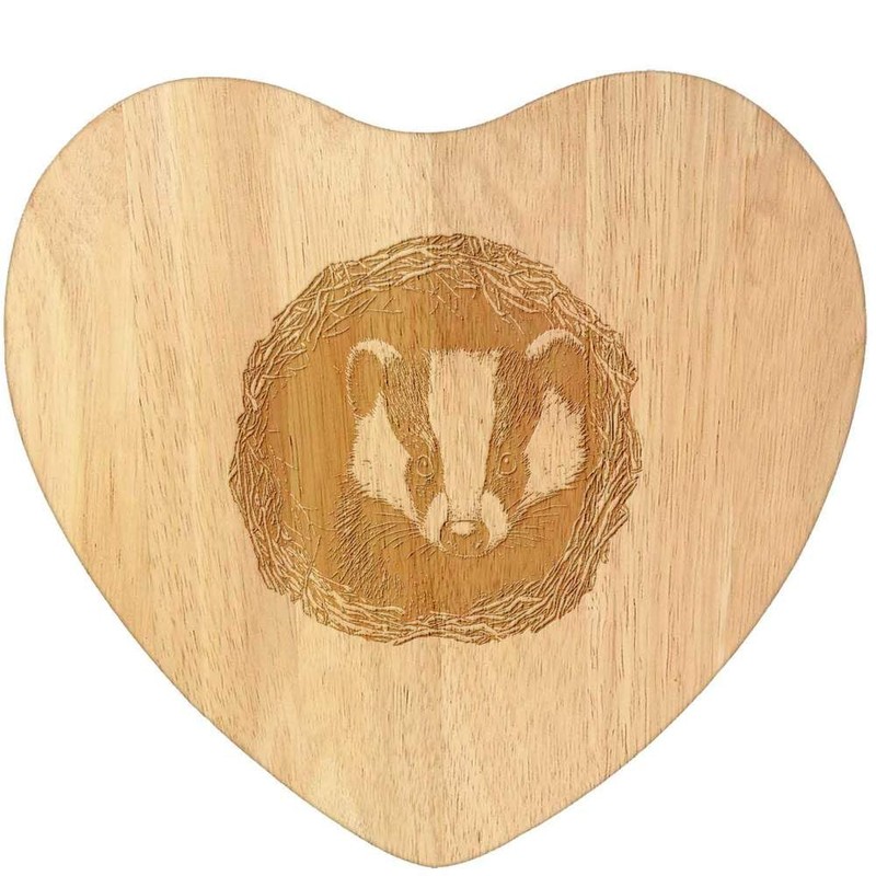 'Badger in a Den ' Wooden Heart Shaped Chopping/Cutting Board (WB00085137)