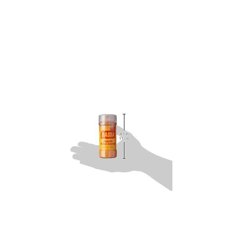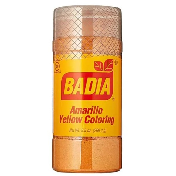 - Badia Amarillo Yellow Food Colour 269.3g (9.5oz) is a vibrant and versatile coloring agent perfect for adding a cheerful yellow hue to your home cooking.