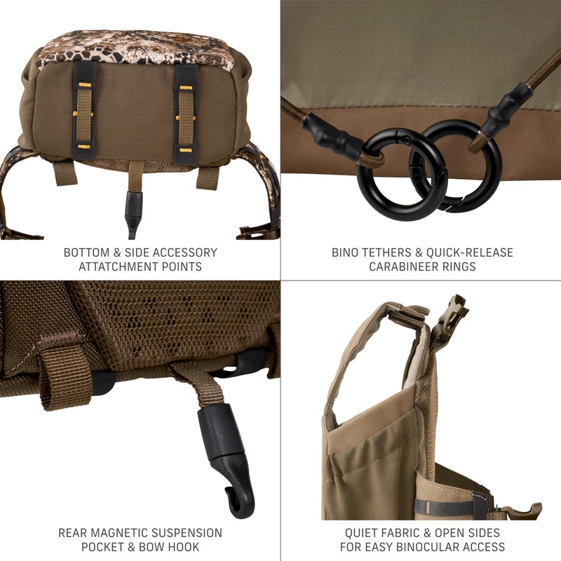 - Ergonomic, Quiet Interior Fabric - Surprise is on your side with a quiet fabric that lets you scope the area without disruption, plus the ergonomic strap system keeps you comfortable