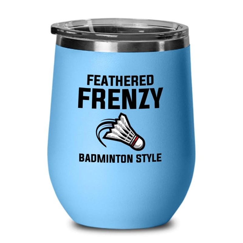 Badminton Blue Edition Wine Tumbler 12oz - Feathered frenzy badminton - Badminton Player Racket Sport Theme for Athlete Net Birdie Badmintonist Court Game