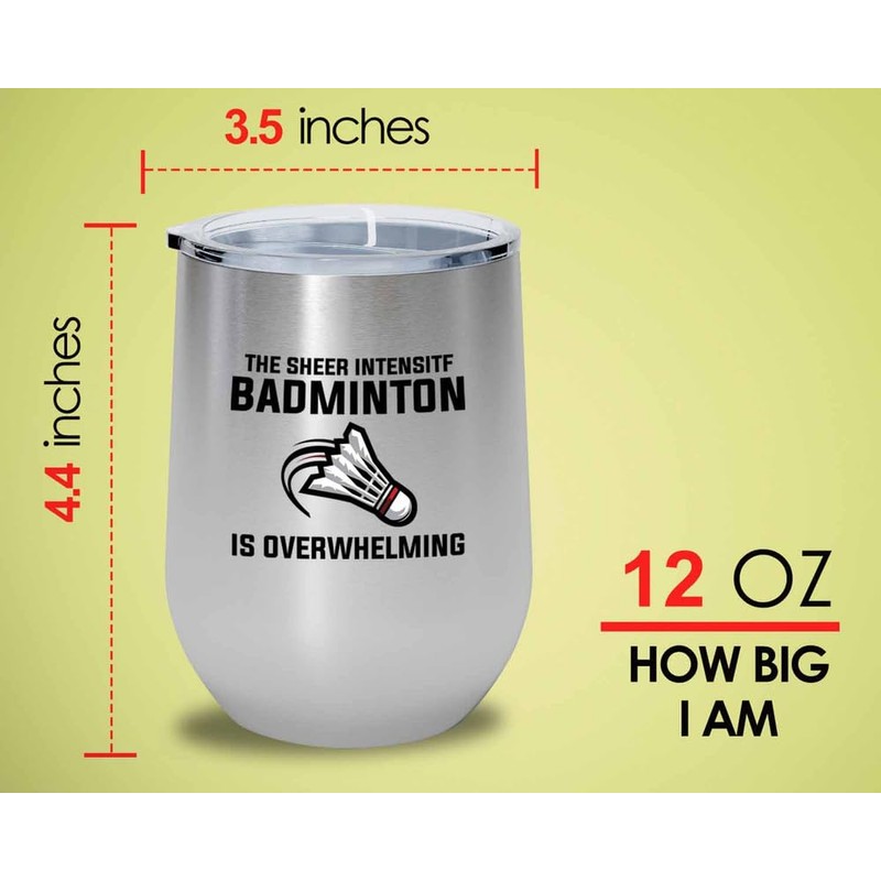 Badminton Silver Edition Wine Tumbler 12oz - The sheer intensity - Badminton Player Racket Sport Theme for Athlete Net Birdie Badmintonist Court Game