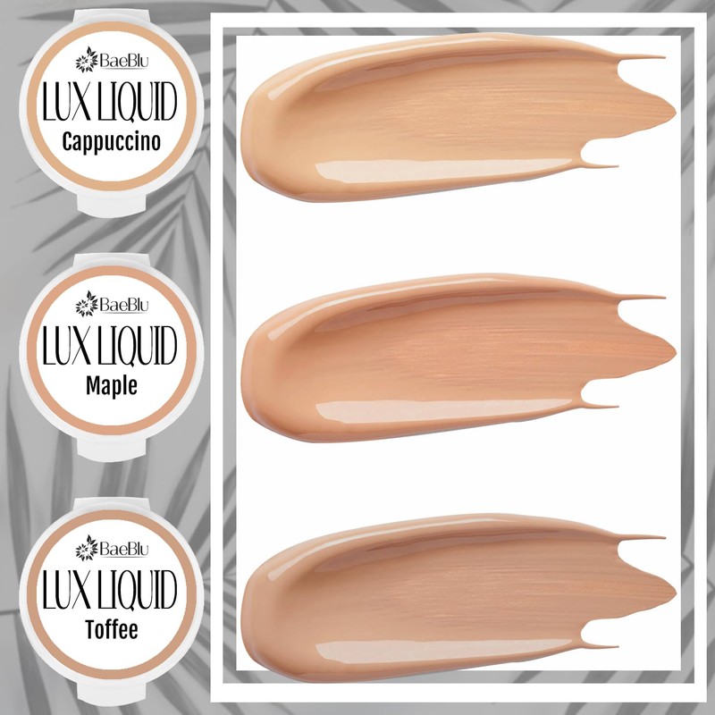 BaeBlu Organic LUX Liquid Foundation SAMPLES, Cappuccino, Maple, Toffee