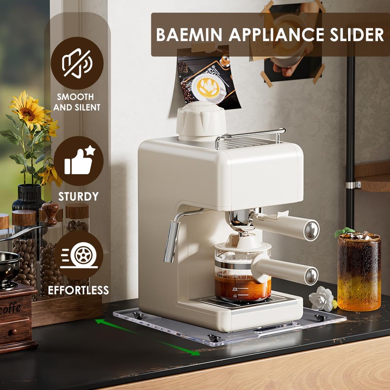 - Effortless Countertop Movement: The Baemin appliance sliding tray make it easy to quickly and quietly slide your kitchen appliances, allowing you to smoothly pull them out from under the cabinets, helping to prevent steam damage.