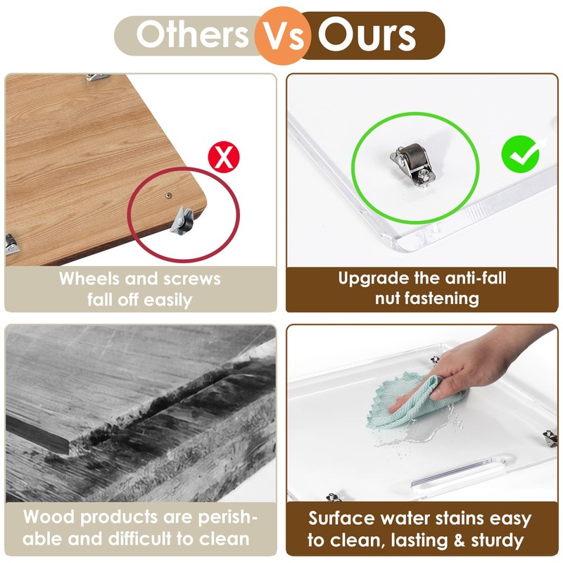 - Premium Material with Quiet Wheels: Constructed from high-quality acrylic, our sliding tray features silent rubber wheels for smooth, scratch-free movement on your countertop. With upgraded nut fixing, the screws are securely in place for added stability.