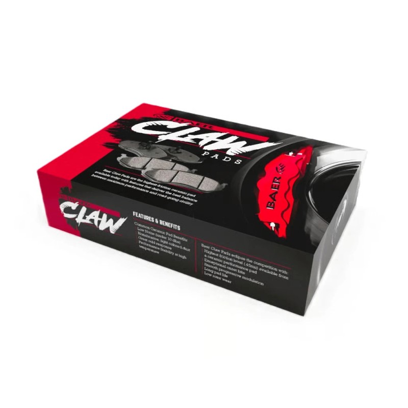 Baer Claw brake pads provide optimum braking power with minimum noise and dust. Baer Claw pads feature a ceramic compound that is formulated to provide long lasting, consistent performance and a quick and easy break in. Each pad set includes stainless steel abutment and noise suppression hardware. The Baer Claw brake pads are a great performing, affordable option for your daily drivers to weekend warriors as well as light towing applications.;