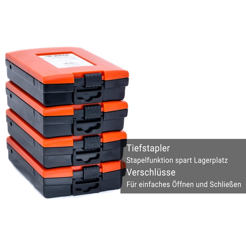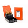 - Box contents: the tap and die set consists of 7 machine taps from M 3 to M 12 and 7 HSS/TIN core hole drills.