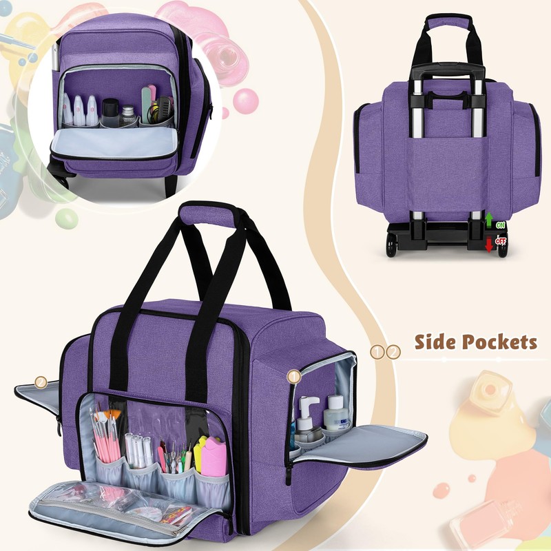 BAFASO Rolling Nail Polish Organizer Holds 144 Bottles, Nail Polish Case with a Detachable Dolly and 3 Removable Cases (Patented Design), Purple