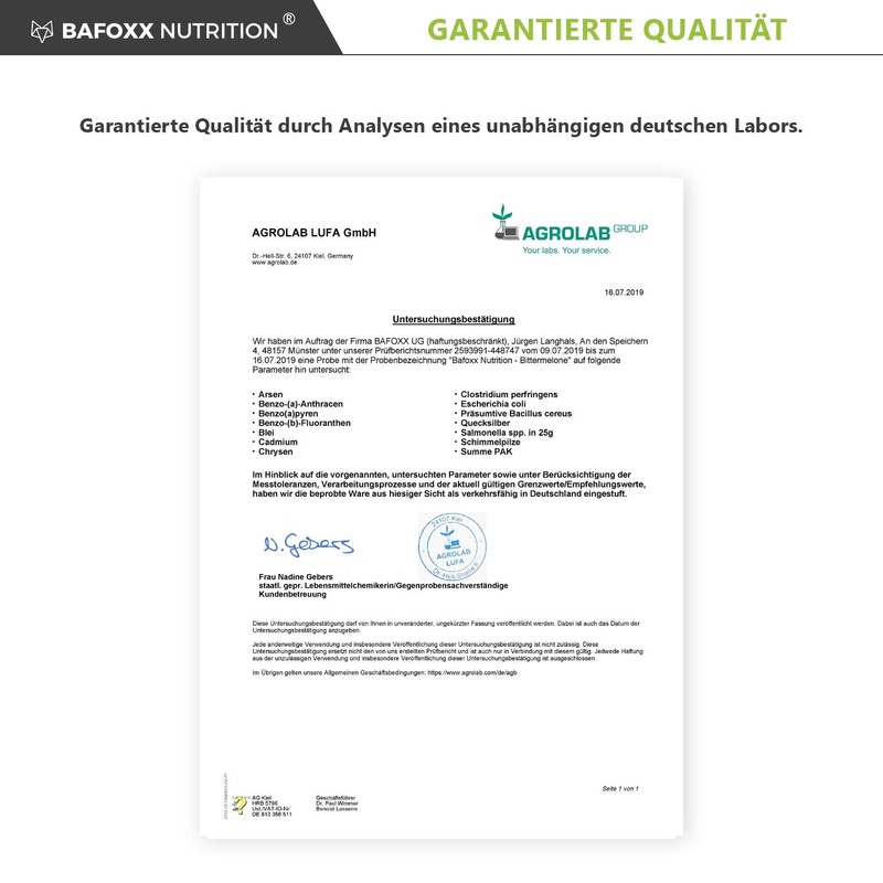 - Laboratory tested quality. Bottled in German production facilities under constant quality controls. Dietary supplement with selected raw materials with specification and certificate of analysis.
