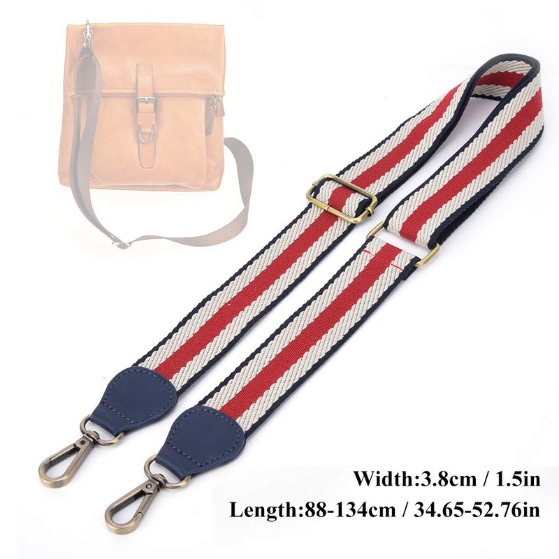 Bag Strap, 1.5in Width Woven Ribbon with Leather Ends Shoulder Strap Adjustable Replacement Belt for Crossbody Handbag Bag Purse DIY Accessory 88-134cm/34.65-52.76in(Dark Blue Red)