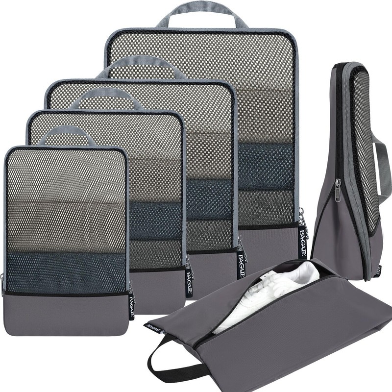 BAGAIL 4 Set/6 Set Compression Packing Cubes Travel Accessories Expandable Packing Organizers(Dark Grey HalfMesh 6 Set)