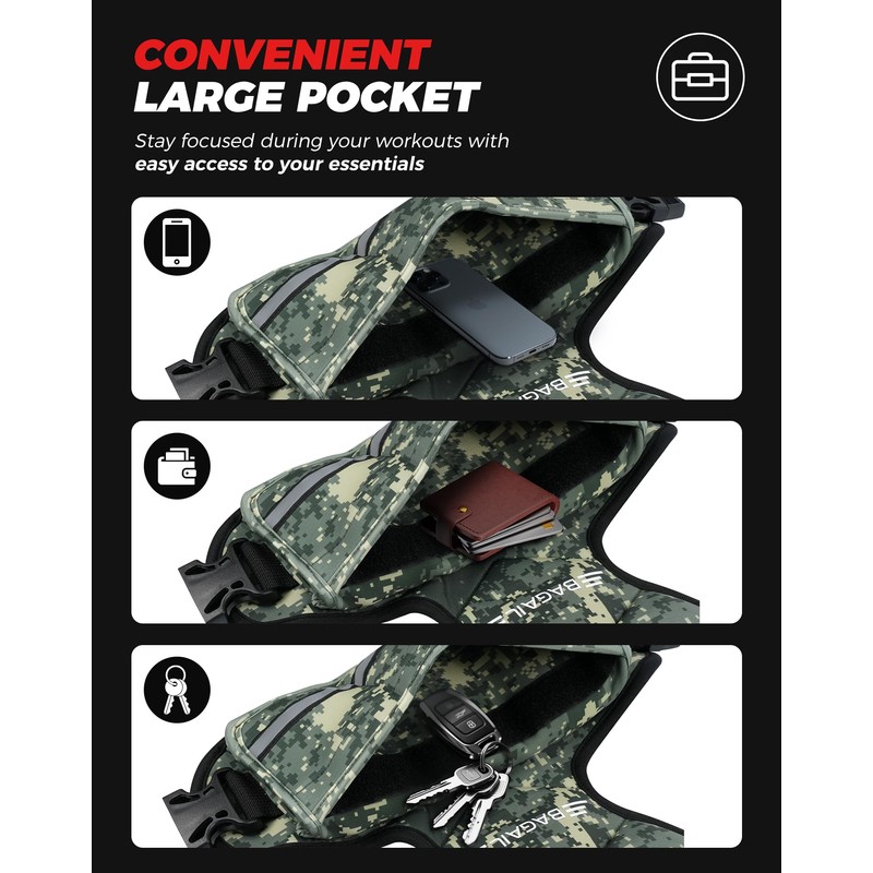 BAGAIL Adjustable Weighted Vest, 4-10lb/12-18lb/20-32lb Rucking Vest for Women & Men with 6 Weights & Large Pocket, Weight Vest for Home Workouts, Running, Walking and Strength Training - Green Camo