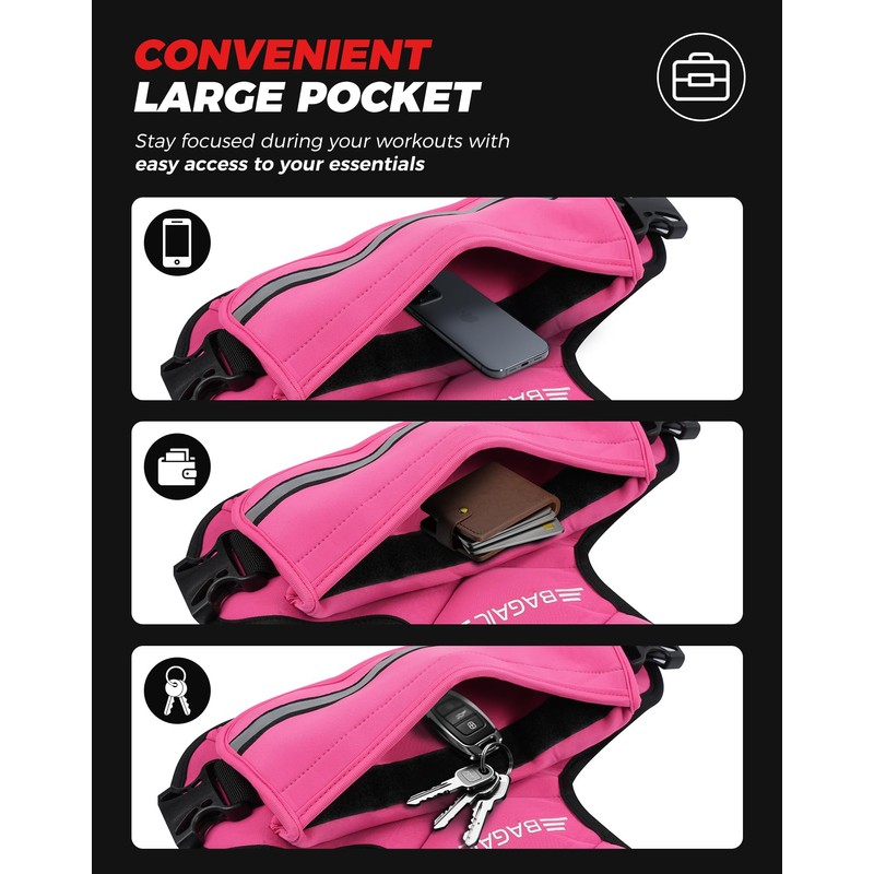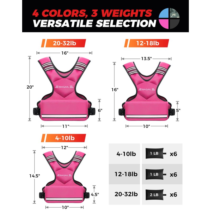 BAGAIL Adjustable Weighted Vest, 4-10lb/12-18lb/20-32lb Rucking Vest for Women & Men with 6 Weights & Large Pocket, Weight Vest for Home Workouts, Running, Walking and Strength Training - Pink