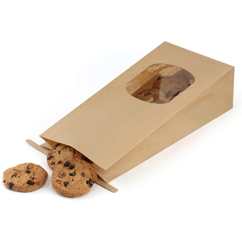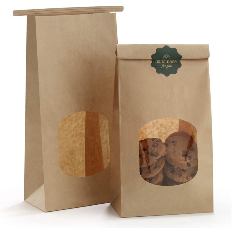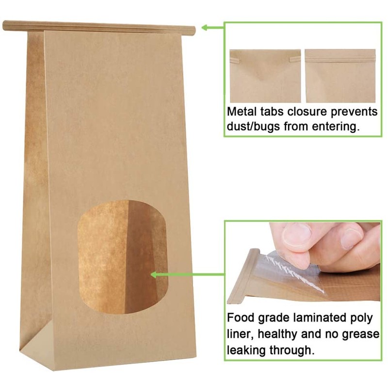 BagDream Bakery Bags with Window Kraft Paper Bags 100pcs 4.5x2.36x9.6 Inches Tin Tie Tab Lock Bags Brown Window Bags Cookie Bags, Coffee Bags