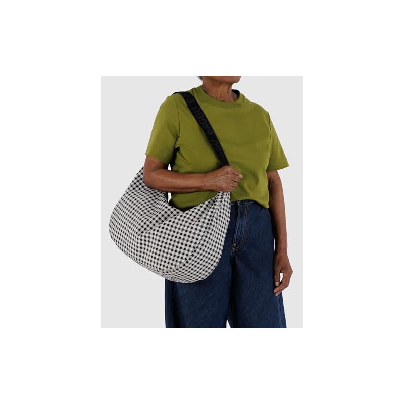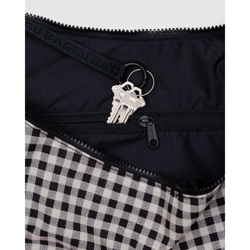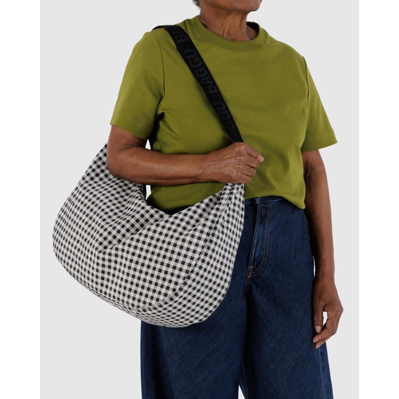 BAGGU Large Nylon Crescent Bag - Black & White Gingham