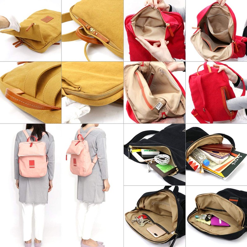 This is a uniquely designed backpack with a flap type backpack and a separate zipper pocket separated from the main body to make it look like a flap. Even though it is a clean square type, it has a rounded and soft design, so you can take it with you as cute as you like. This backpack has a casual feel with a combination of canvas and leather colors. It can be carried naturally without any hassle, so it is useful as a daily bag for daily use.