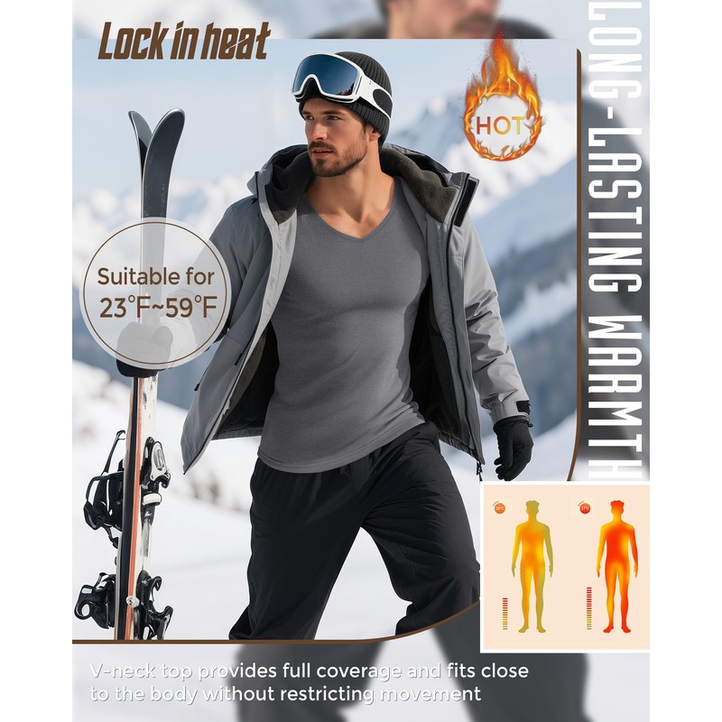 - Functional Design: the curved hem fits the waist curve during activity, the v neck design adds a sense of fashion, while the raglan sleeve design allows complete shoulder mobility; These mens thermal tees balance style and practicality